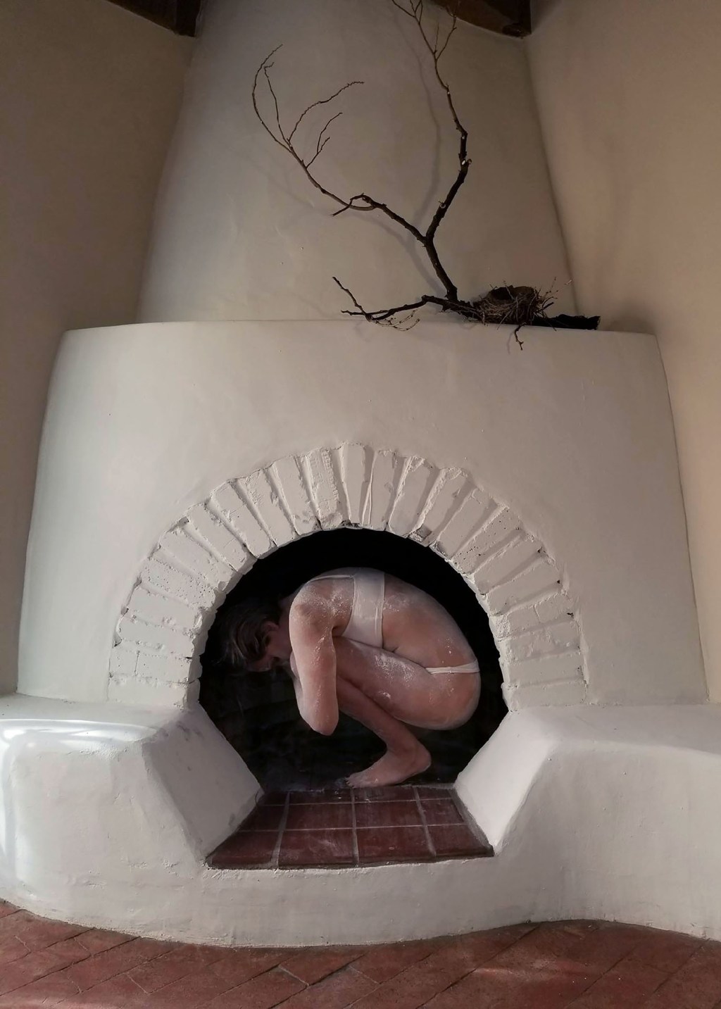 Presented as part of Axle Contemporary’s summer series of performance art, Tortilla Baby is a tenderly absurd performance of viviparity, wherein I built myself in to an horno-like structure in order to be born (or perhaps escape) to ruminate on birth, belonging, and the fraught yet intimate relationship between parents and children.
