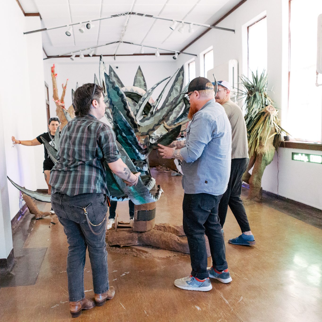 We Are. Here Together. adapted Maestas’ short film, Yucca goes to group into a richly collaborative exhibition incorporating sculpture, poetry, performance, workshops, costume design, and new media. Mounted as part of the Art & Social Justice Residency, We Are. Here Together. included exhibitions in two gallery spaces, as well as a live performance.