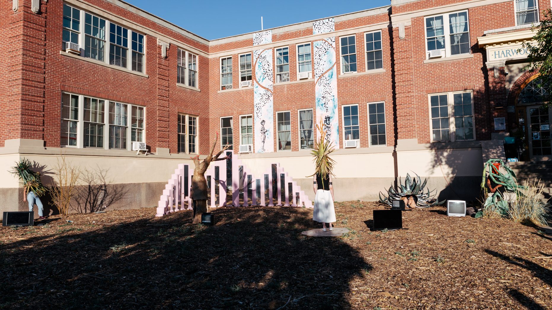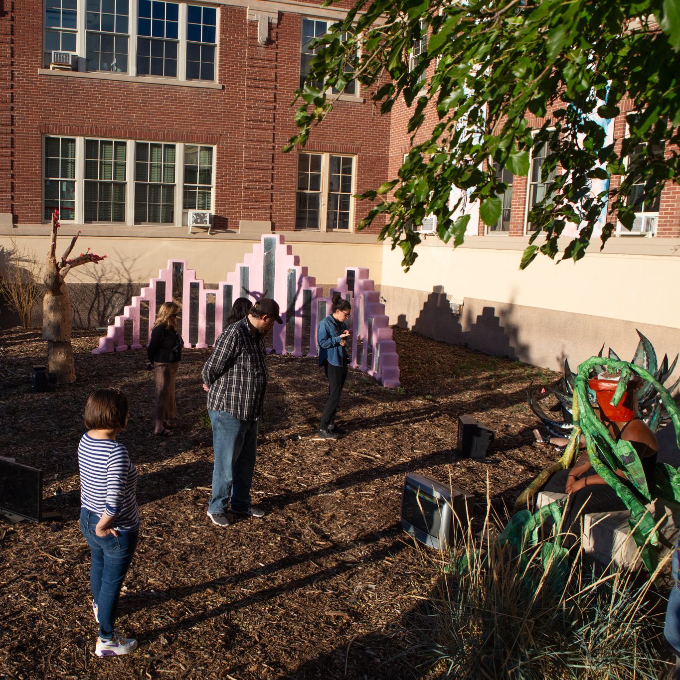 during a class on local ecology and art-making using found and recycled materials, myself and a group of 2nd and 3rd graders built large-scale, whimsical, yucca-inspired sculptures emphasizing the intimacy and creative generativity of co-presence, and how truly special it is to be alive in space together. These structures, reconfigured, appeared in the final exhibition alongside documentation of the class and some of the questions students considered during their build process.