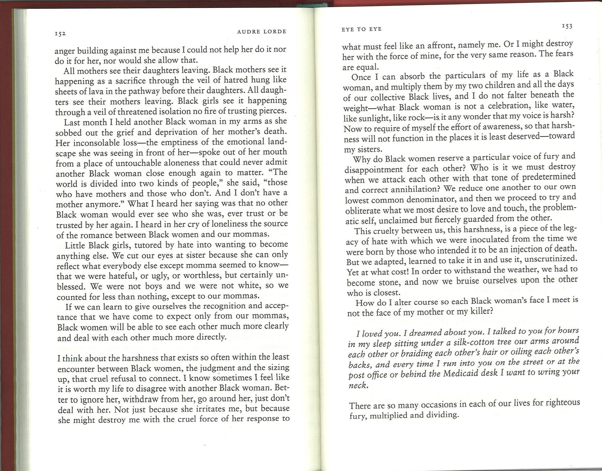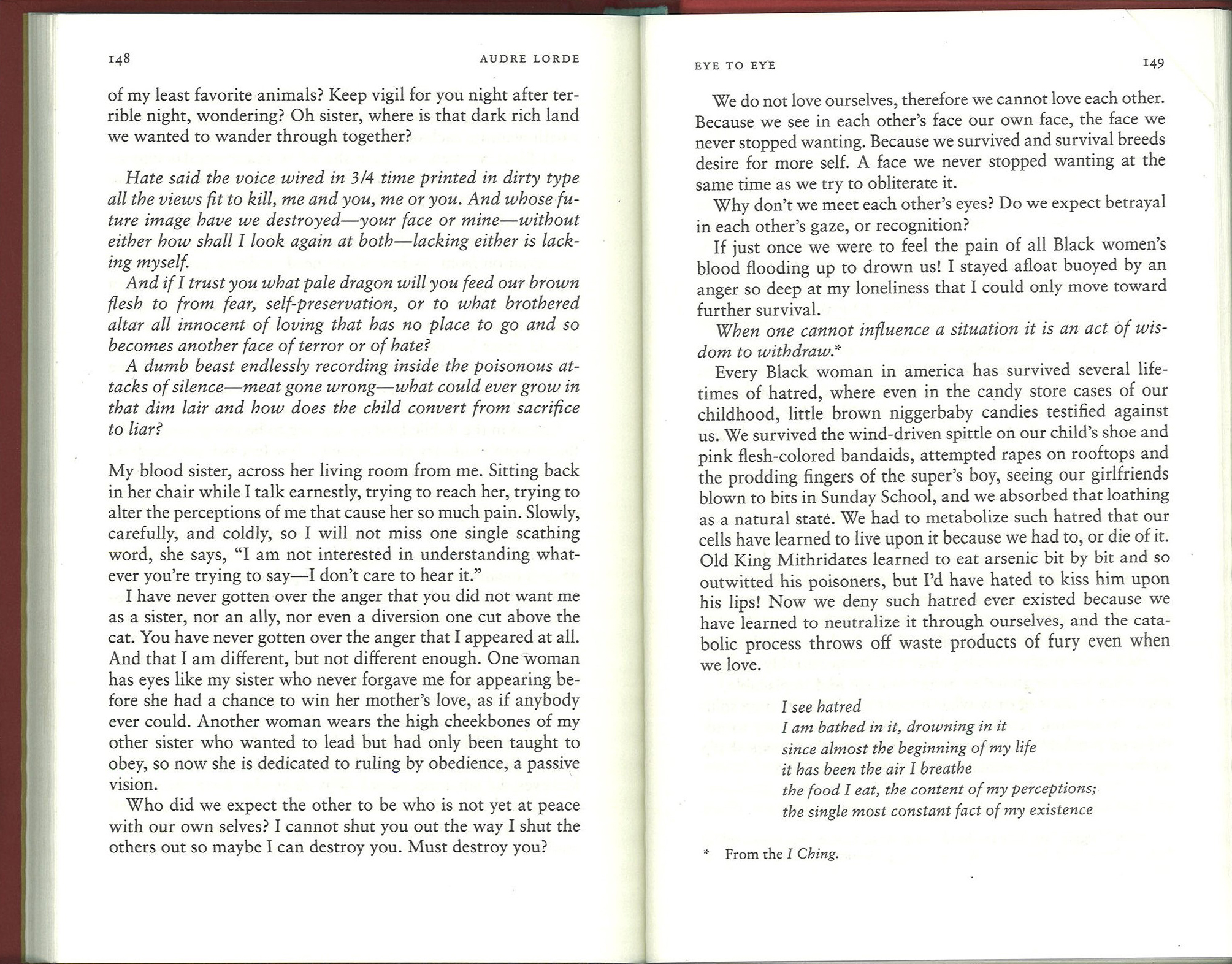 Though the essay details Lorde’s personal relationships with colleagues and family, her thoughtful analysis of interpersonal dynamics can apply to any number of adversarial and/or dehumanizing interactions. Read the full essay below: